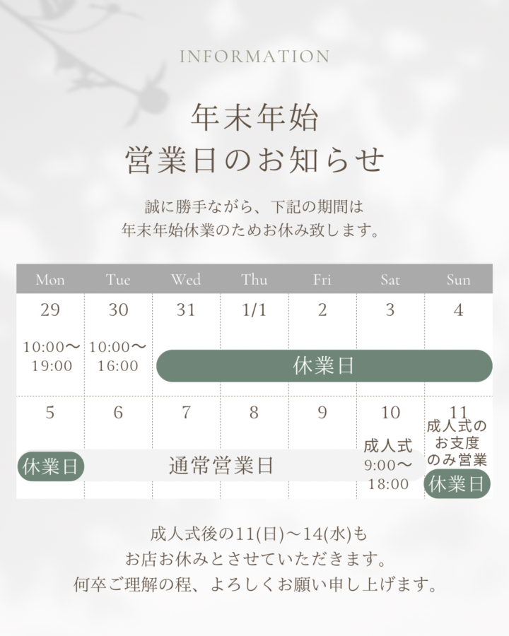11(日) ※成人式のお支度のみ営業