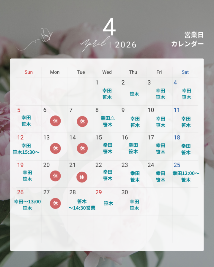 〜4月のお店営業日〜