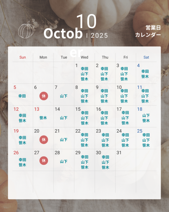 9月・10月のお店営業日